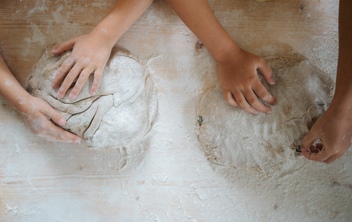 mit Sophie Brotteig geknetet, bis unsere Finger voller Mehl waren.